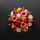 - Bûchette Céleste : ganache montée mascarpone vanille, crémeux fraise, compotée framboise, biscuit génoise vanille